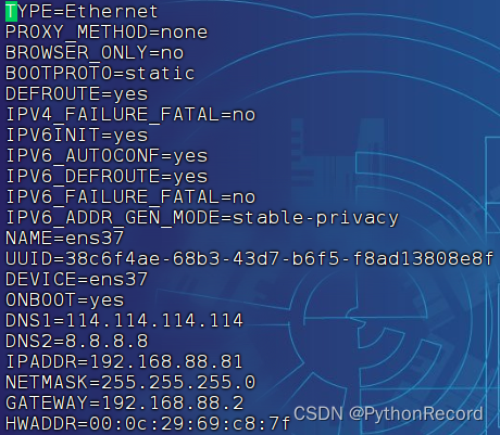 a、复制ens33文件,更名为ens37:cp ifcfg-ens33 ifcfg-ens37