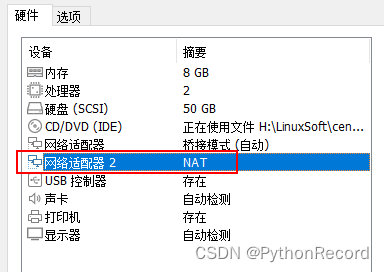 1、添加第二块网卡,设置NAT模式