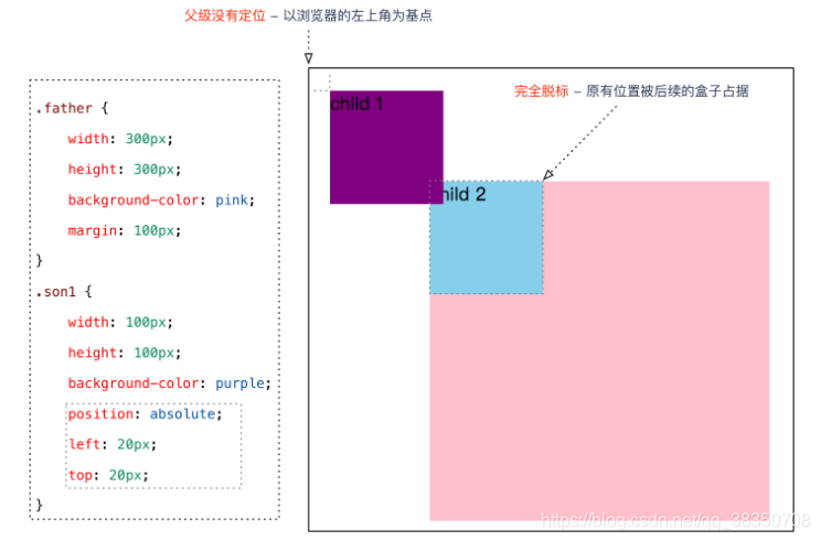 绝对定位 绝对定位不占据位置,后面的盒子顶替到之前的位置