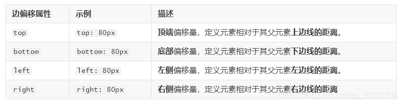 在css中,通过top、bottom、left和right属性定义元素的边偏移:(方位名词)