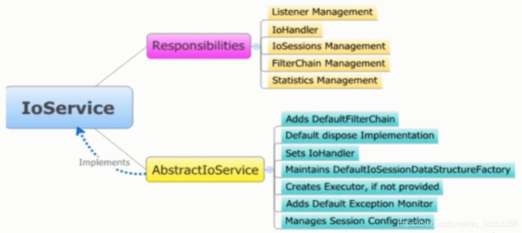 Responsibilities职责主要负责监听的管理,IoHandler的管理,IoSession的管理等等