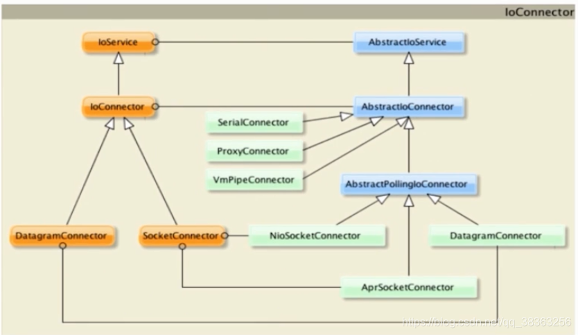 DatagramConnector和SocketConnector两个接口继承IoConnector,一个支持TCP协议,一个支持UDP协议