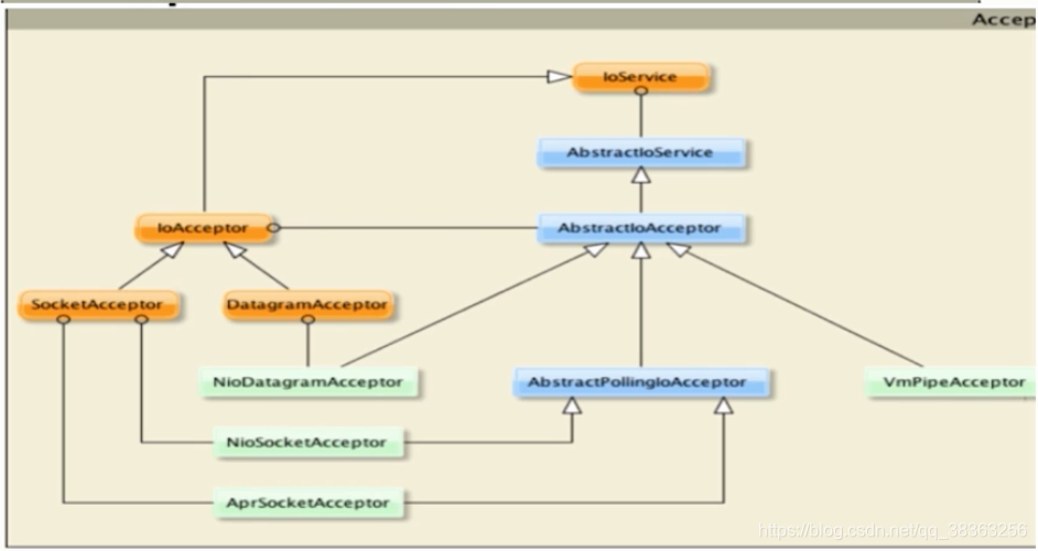 SocketAcceptor 和 DatagramAcceptor继承IoAcceptor 两个接口分别一个支持UDP协议,一个支持TCP协议
