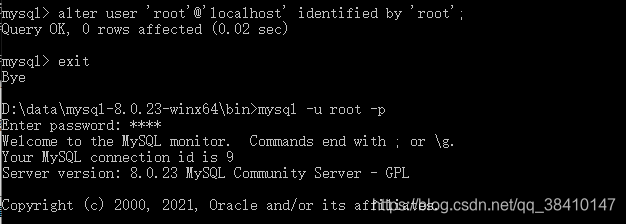 打开命令窗口,cd D:\data\mysql-8.0.23-winx64\bin