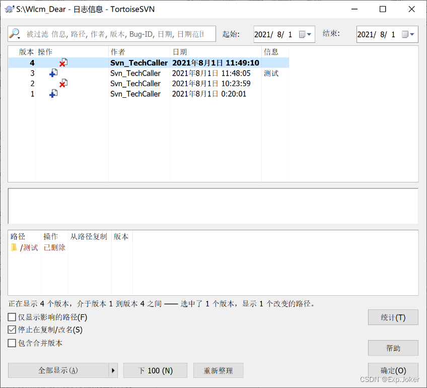 Log Message History下拉框可以让你使用以前所输入过的日志,可以选择后再进行一些修改,这个功能可以根据实际情况使用。