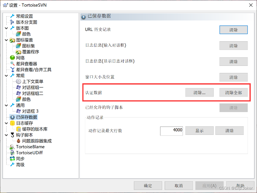 若勾选了save authentication,可以通过TortoiseaSVN 的setting来取消此选项。方法如下:任意地方右击,弹出菜单,选择TortoiseaSVN –setting,
