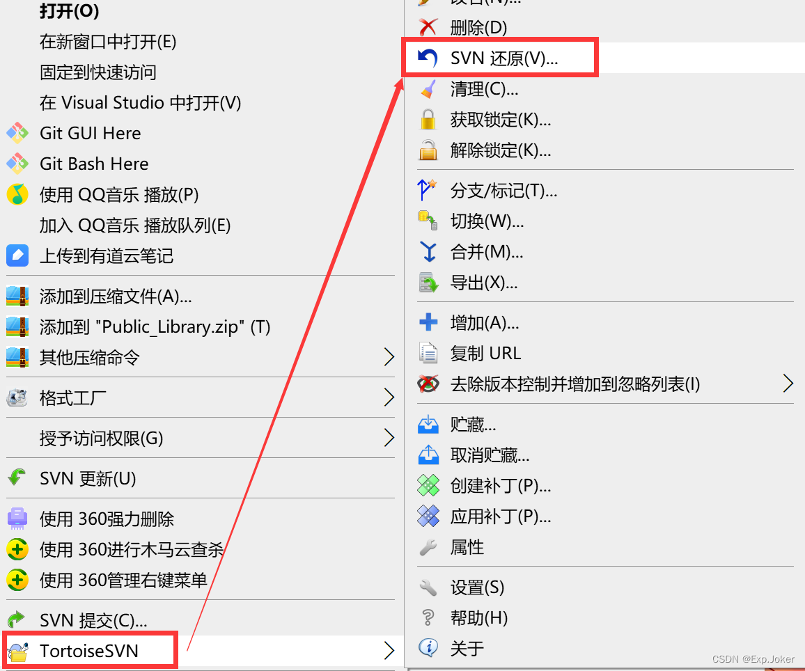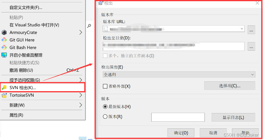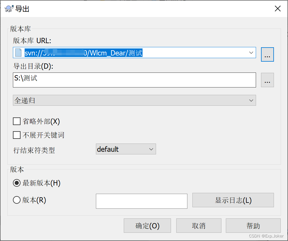 Export: 导出一份干净的目录。所谓“干净的”就是指导出的文件不受SVN的版本控制。默认情况是导出最新版本,也可以指定版本导出。