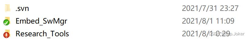 导出成功。可以看到,不带svn的绿色标记,也没有svn目录,为干净的目录树。