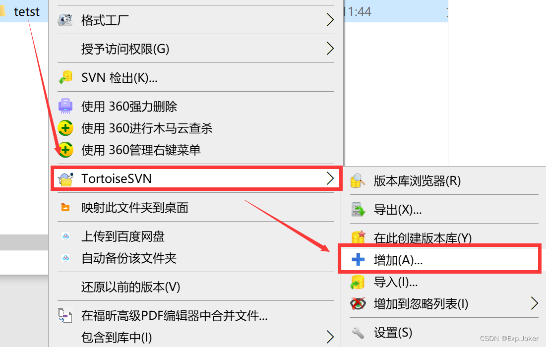 在windows 资源管理器中创建一个文件夹,选中文件夹为下载目录,右击,出现checkout