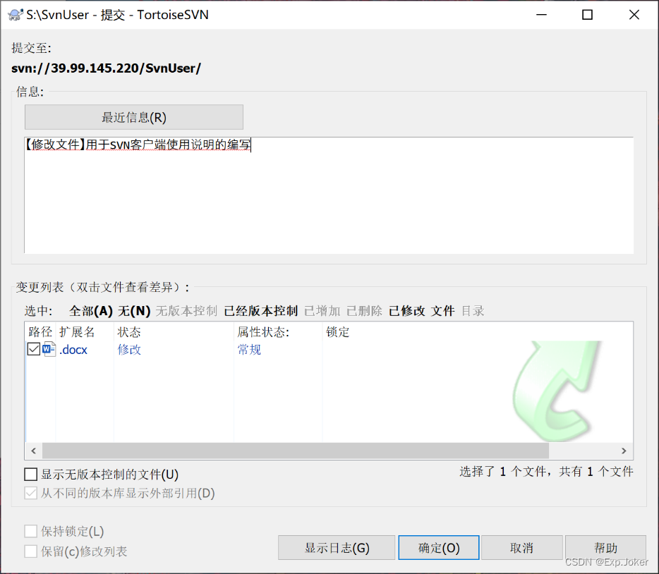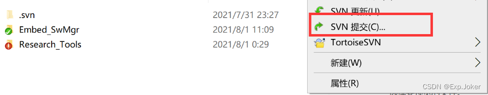 使用SVN Commit命令,TortoiseSVN -> commit:
