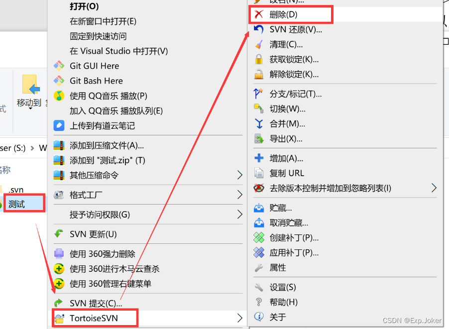 删除文件或目录,不能直接用Windows的删除命令来操作,那样只是暂时的删除,在update Working Copy后,删除的文件又会被更新出来的。