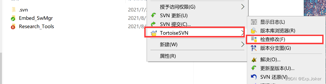本地更改和服务器比较:在本地工作拷贝中修改文件后,可以右击此文件,选TSVN-diff,查看修改的内容