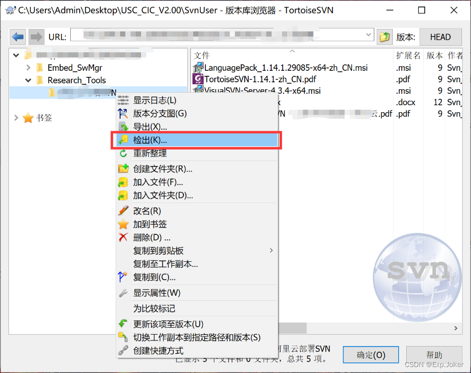 2、还有一种方法,可以在Repo-browser中直接选中你要check out的目录,右键菜单-check out