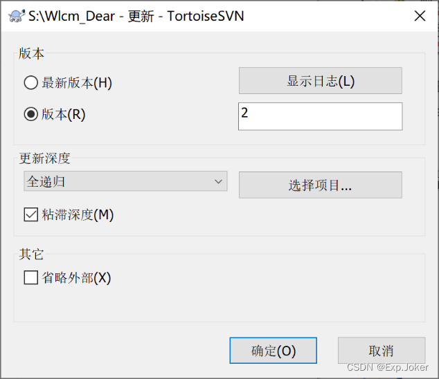 如果输入或者选择版本2,OK后工作拷贝就可以回到版本2,如图: