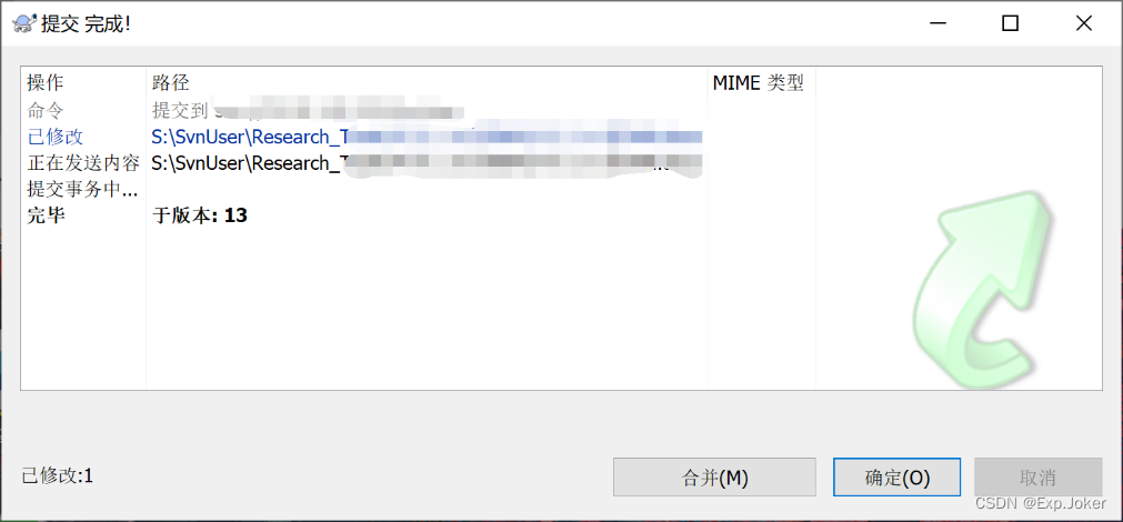 合并完成后,执行TortoiseSVN-Resolved,即完成新的修改。执行Commit提交修改,声称新的版本。