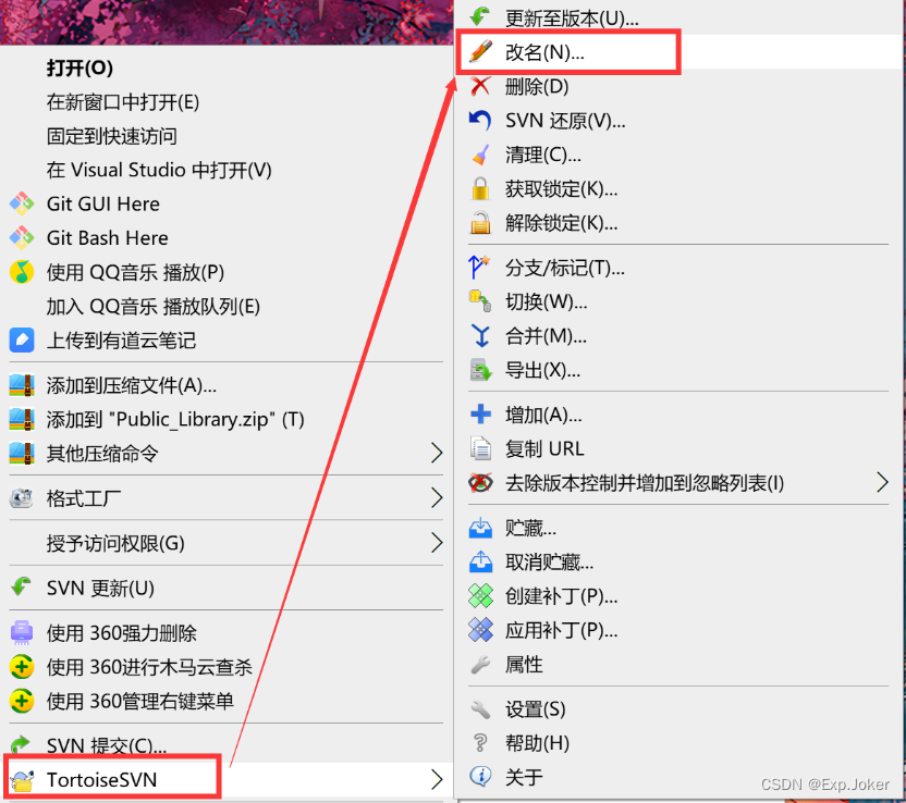注意:用svn的命令,不能直接在windows的资源管理器中更名。