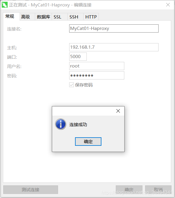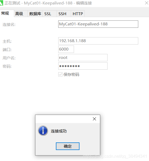 然后用Navcat连接,地址用虚拟IP,账号密码用mycat的