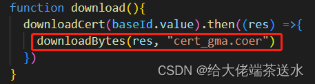 将通用方法引入使用页,传入后端返回数据和文件名即可下载。