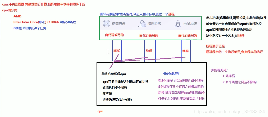 进程:是指一个内存中运行的应用程序,每个进程都有一个独立的内存空间,一个应用程序可以同时运行多个进程;进程也是程序的一次执行过程,是系统运行程序的基本单位;系统运行一个程序即是一个进程从创建、运行到消亡的过程。