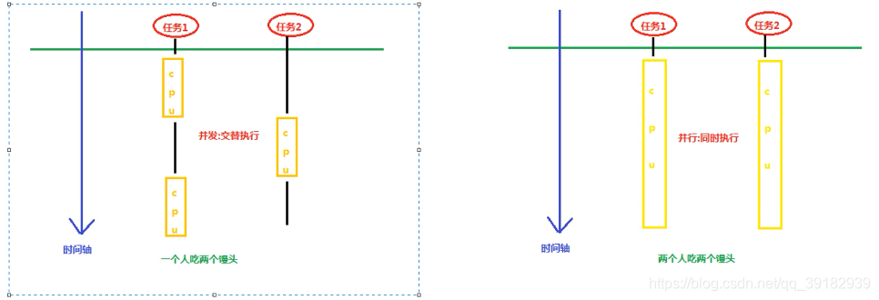 并行:指两个或多个事件在同一时刻发生(同时发生)