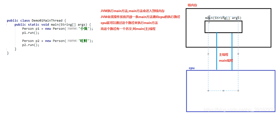 主线程:执行主(main)方法的线程。单线程程序:java程序中只有一个线程。 执行从main方法开始,从上到下依次执行