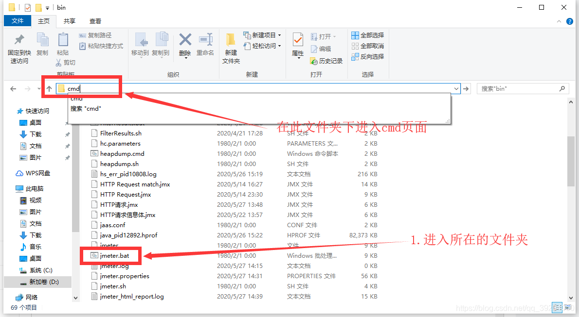 jmeter导出测试报告,需要进入jmeter所在的bin目录下,执行命令行