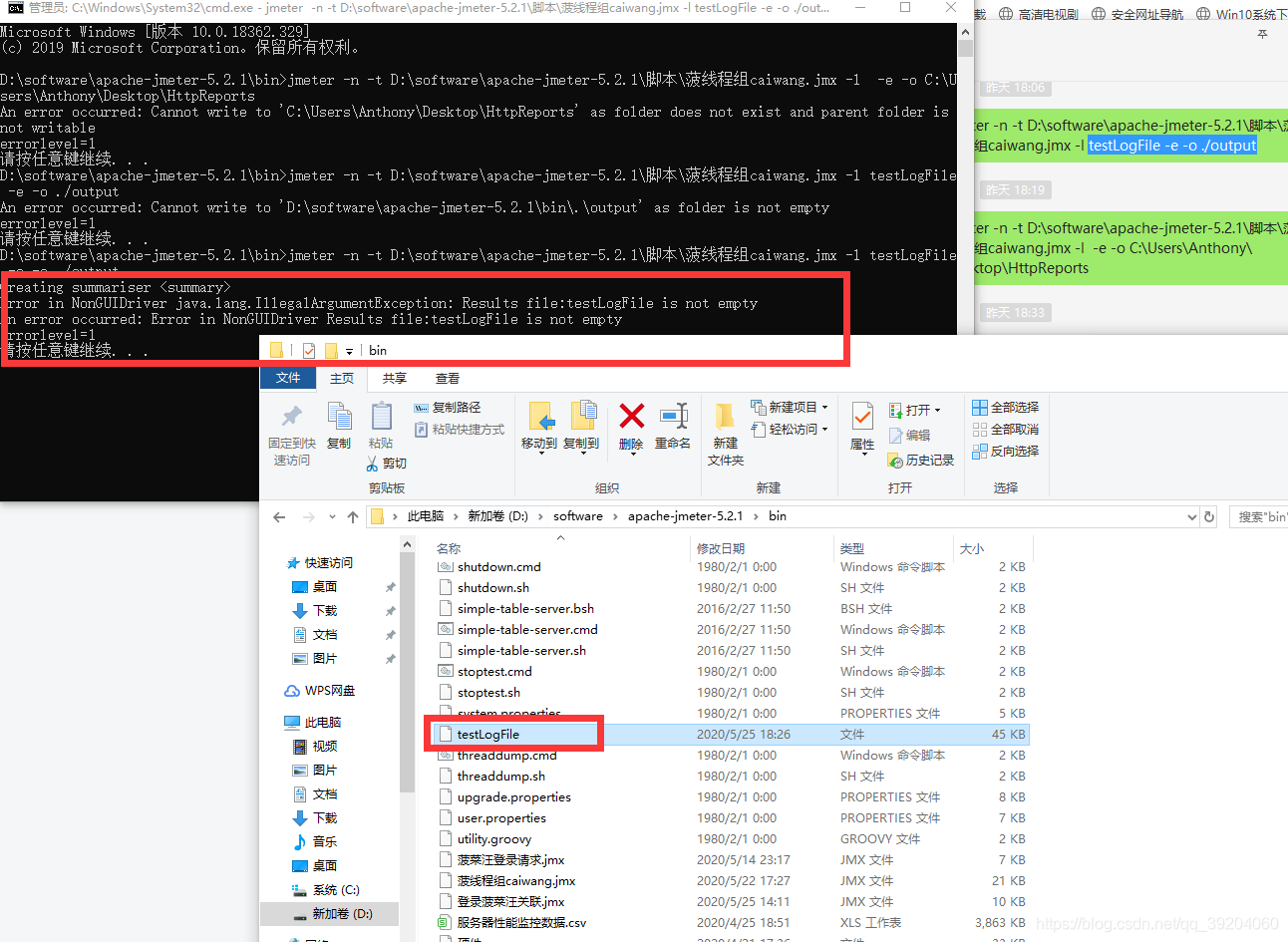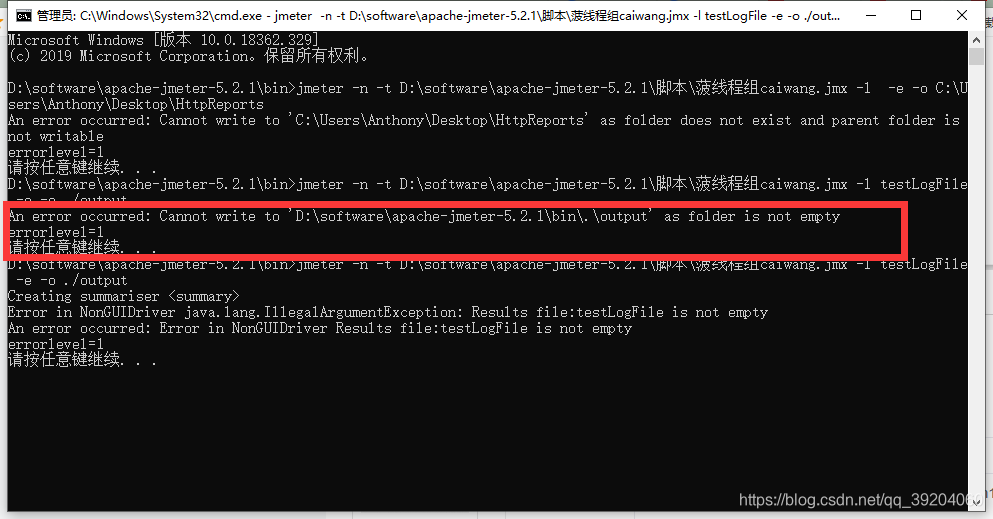 jmeter -n -t D:\software\apache-jmeter-5.2.1\脚本\菠线程组caiwang.jmx -l testLogFile -e -o ./output