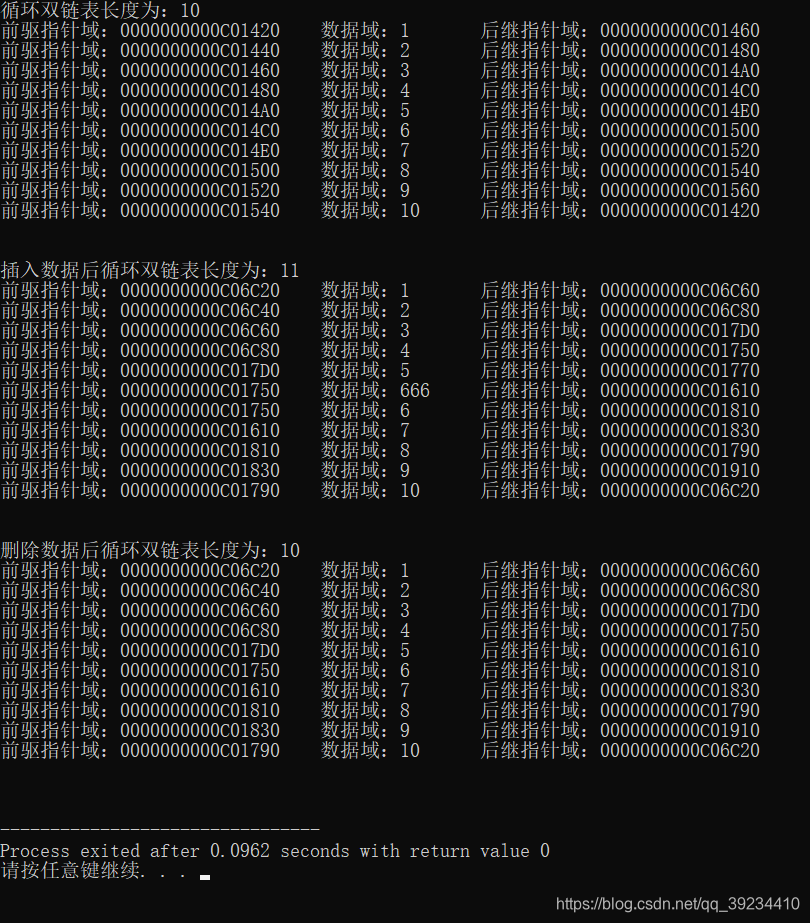 printf("前驱指针域:%p\t数据域:%d\t后继指针域:%p\n",insertDlink->before,insertDlink->data,insertDlink->next);