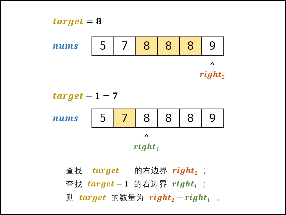 链接:https://leetcode-cn.com/problems/zai-pai-xu-shu-zu-zhong-cha-zhao-shu-zi-lcof/solution/mian-shi-ti-53-i-zai-pai-xu-shu-zu-zhong-cha-zha-5/