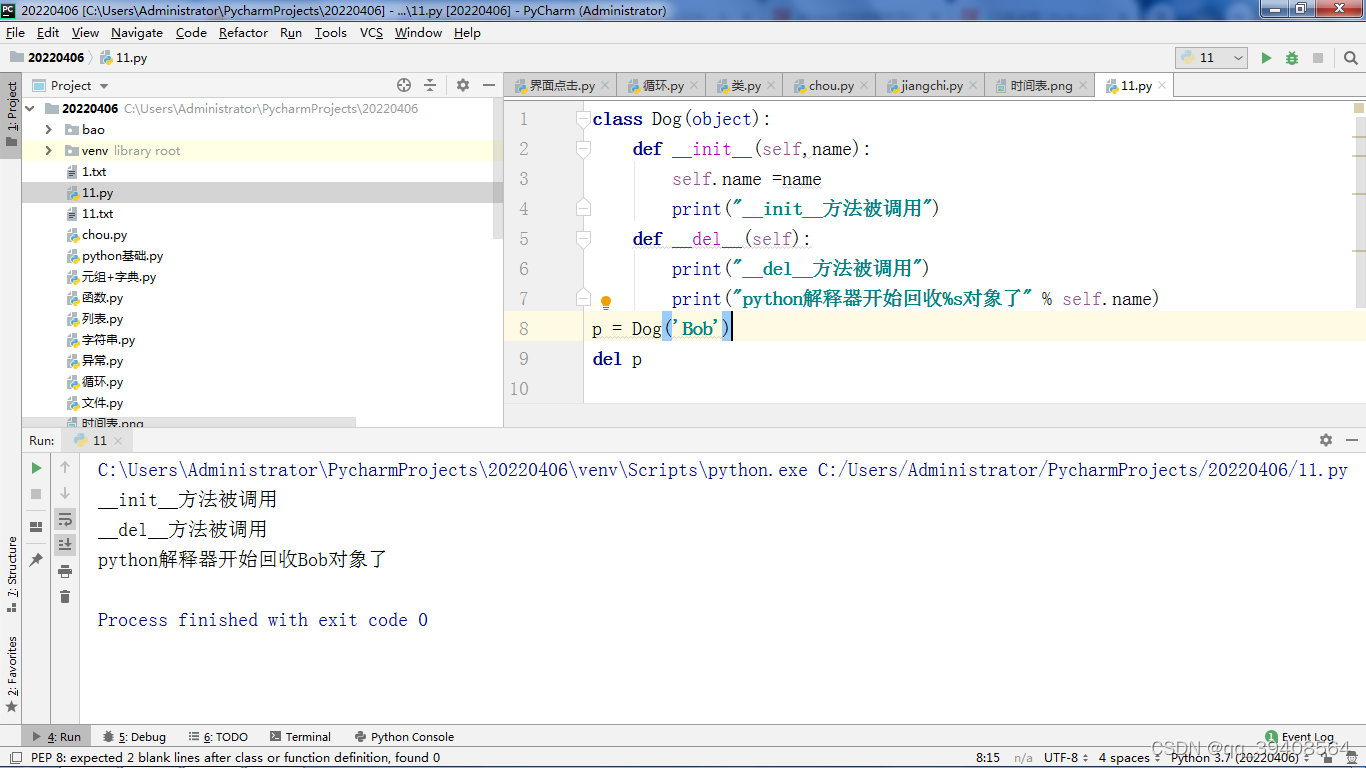 (6):del 析构方法,删除无用的内存对象(当程序结束会自动自行析构方法)