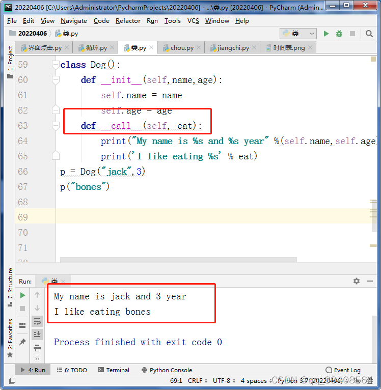 (2):call 如果一个类中定义了__call__方法,对象后面加括号,会触发执行__call__方法