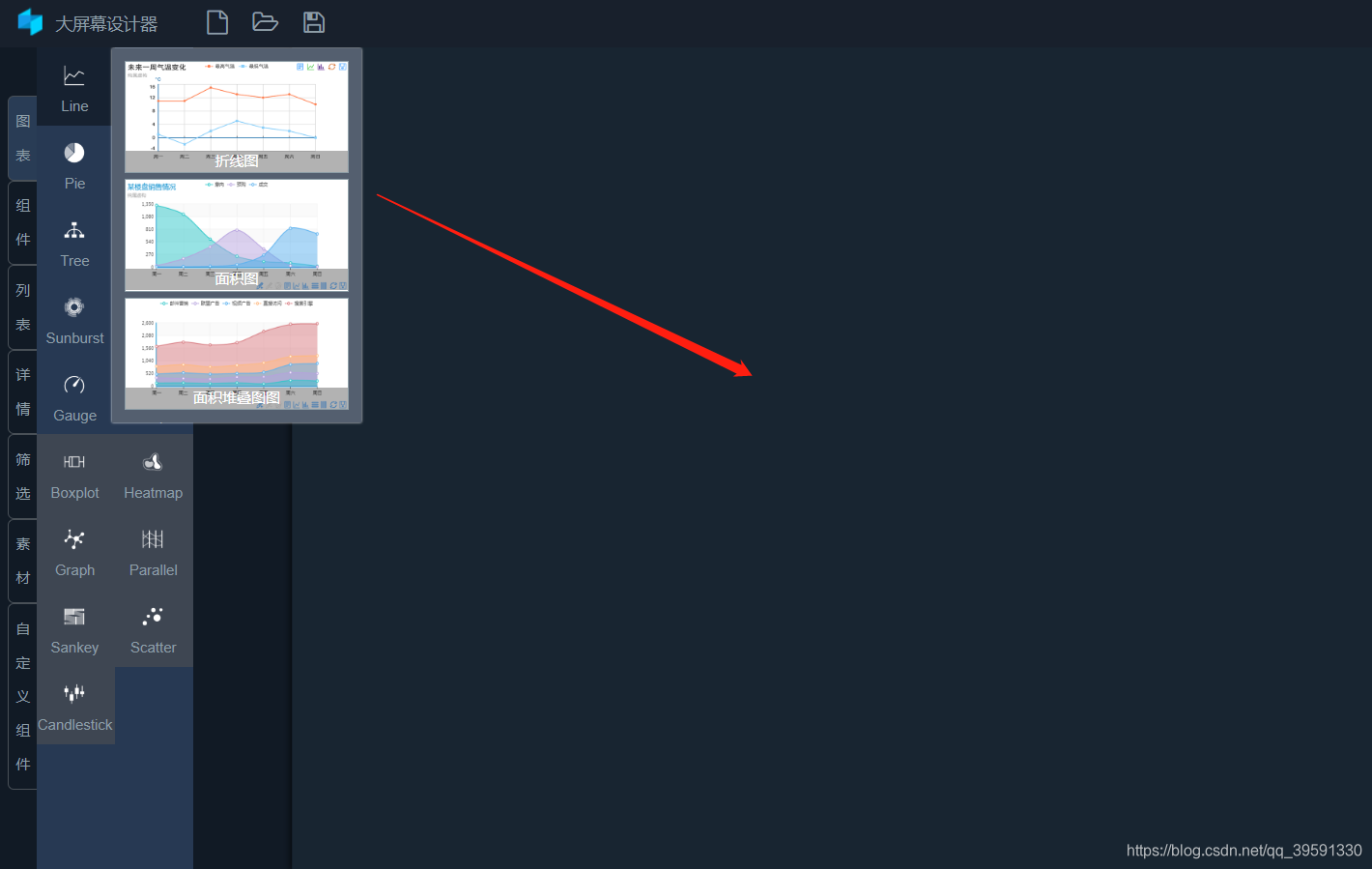 1.制作可视化大屏是要用大屏幕报表设计器,拖拽设计器的图表组件,拖拽至大屏设计器内就可以制作了