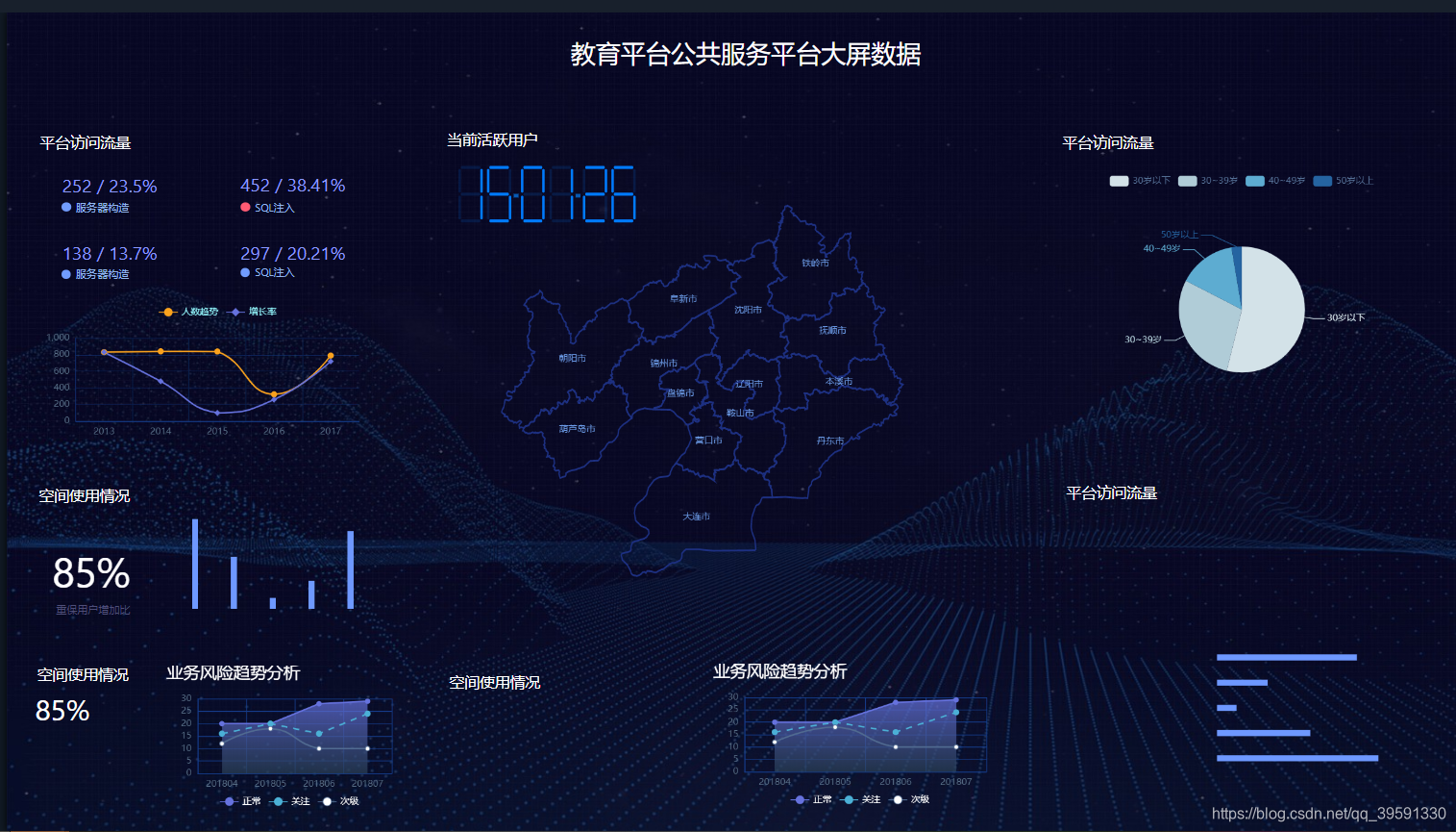 每年我们在双十一、双十二、总是能看到这样的可视化大屏