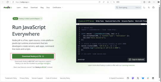 访问nodejs官网,下载安装包(LTS意为long time support,即长期支持版)。