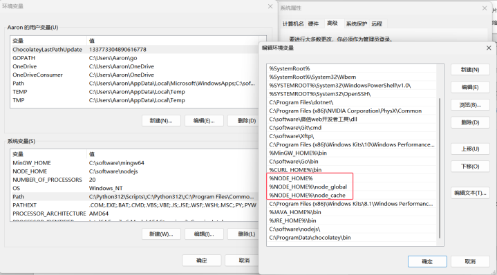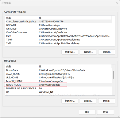 安装完成后,需要设置相应的环境变量。一般node安装过程会自动设置,如未自动设置,可手动在系统搜索栏搜索“环境变量”,选择“编辑系统环境变量”,在系统变量中添加“NODE_HOME”,值为nodejs安装目录路径,然后在系统变量的Path变量中添加