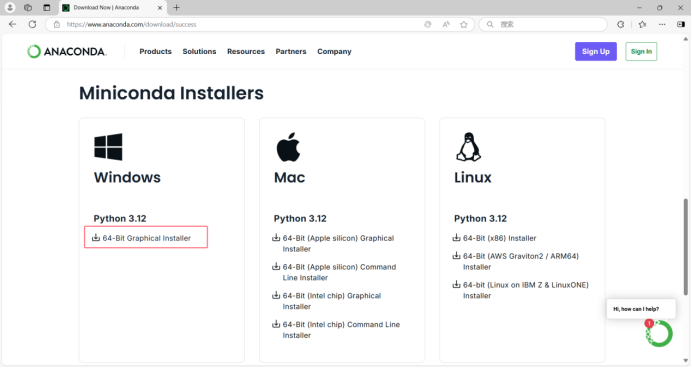 访问anaconda下载页,往下滑找到miniConda下载选项,下载对应安装包。