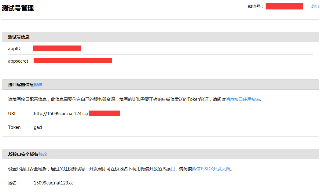 至此,微信公众测试号开通成功,服务器基本配置完成!(服务器能接收微信数据)