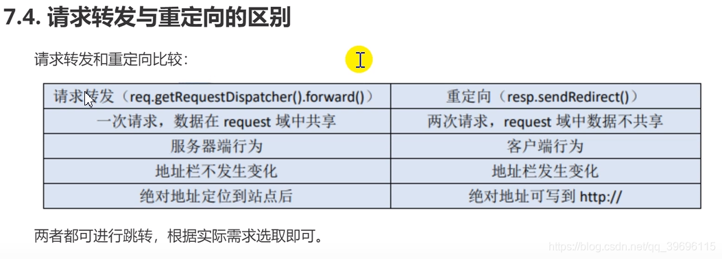 服务器行为,request.getRequestDispather().forward(req,resp) 是一次请求,转发后请求对象会保存,地址栏的URL地址不会变