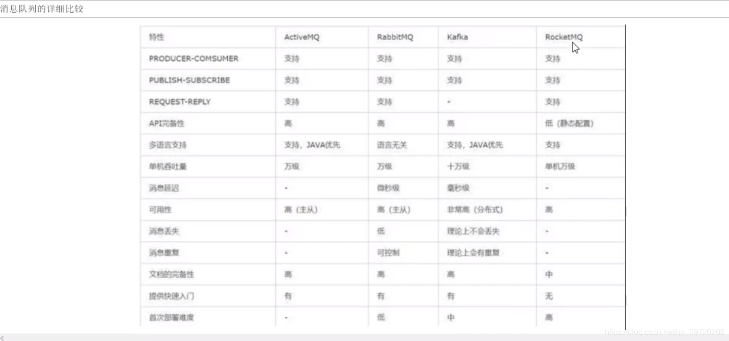 常用消息中间件对比