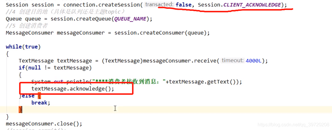 消费端如果开启事务,session一定要提交commit(),否则消息会被重复消费。