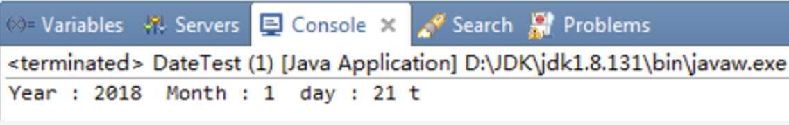 8 System.out.printf("Year : %d Month : %d day : %d t %n", year, month, day);