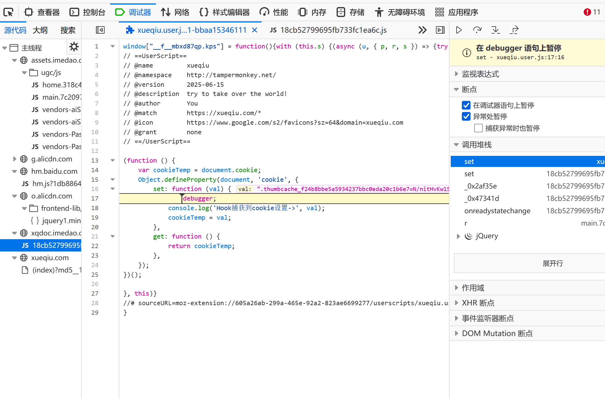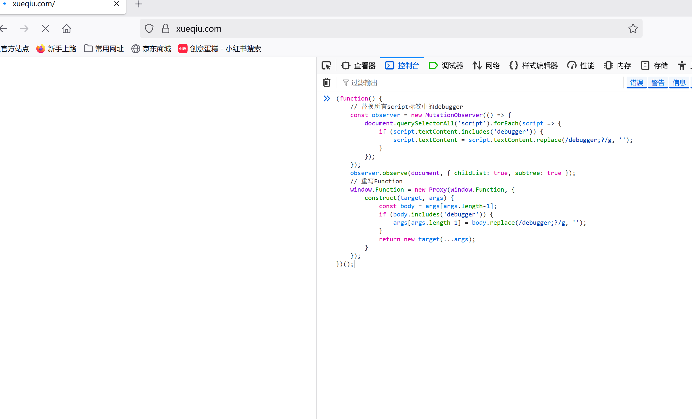 最近在逆向雪球网cookie,碰到阿里云WAF墙的时候,遇到了一个棘手的无限debbuger问题。