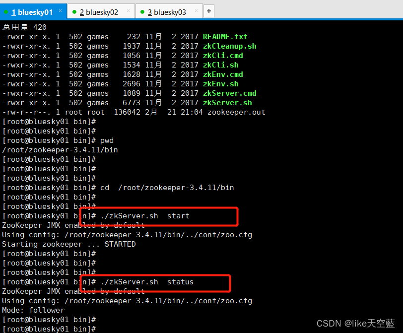 ./zkServer.sh start ./zkServer.sh status ./zkServer.sh stop