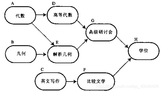 比如学习拓扑排序都会提到的这个很火的课程修读关系图: