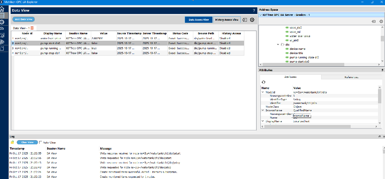 你也可以尝试对可写入标签进行数据写入,然后查看OPC Server端的数据或控制变化。