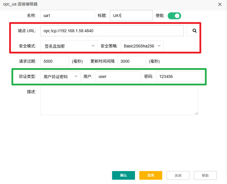 如果OPC UA Server要求用户密码验证,你还得填写用户密码(这个用户密码你需要和OPC Server提供方沟通获取)。确定之后,我们就可以看到左边成功添加了这个接入。