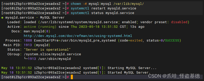 - 解决报错后,重启MySQL