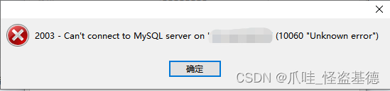 - 可能报错:2003 - Can't connect to MySQL server on 'xxx' (10060 "Unknown error")