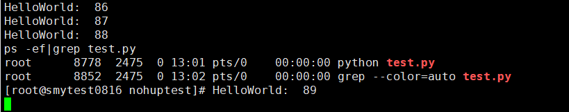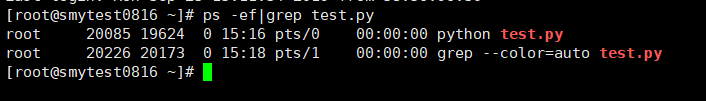 然后键入Ctrl+C,并且执行ps -ef | grep test.py查看一下进程: