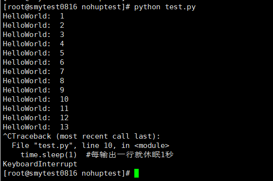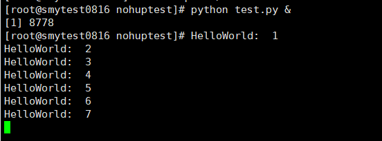 此时重新使用nohup执行一下这个python脚本:nohup python test.py